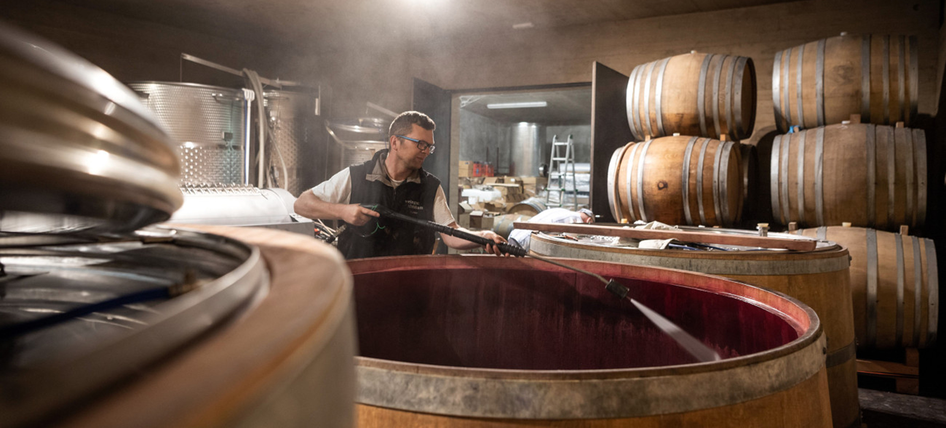 Their vineyards are certified organic, and they employ some biodynamic practices into their farming as well. Their vineyards are a mix of traditional pergola training as well as guyot. The pergola system has become used more and more as it tends to produce wines with lower acidity and the shading of the canopy slows ripeness and helps limit alcohol levels. The system requires more attention in farming but they feel the results are well worth it.